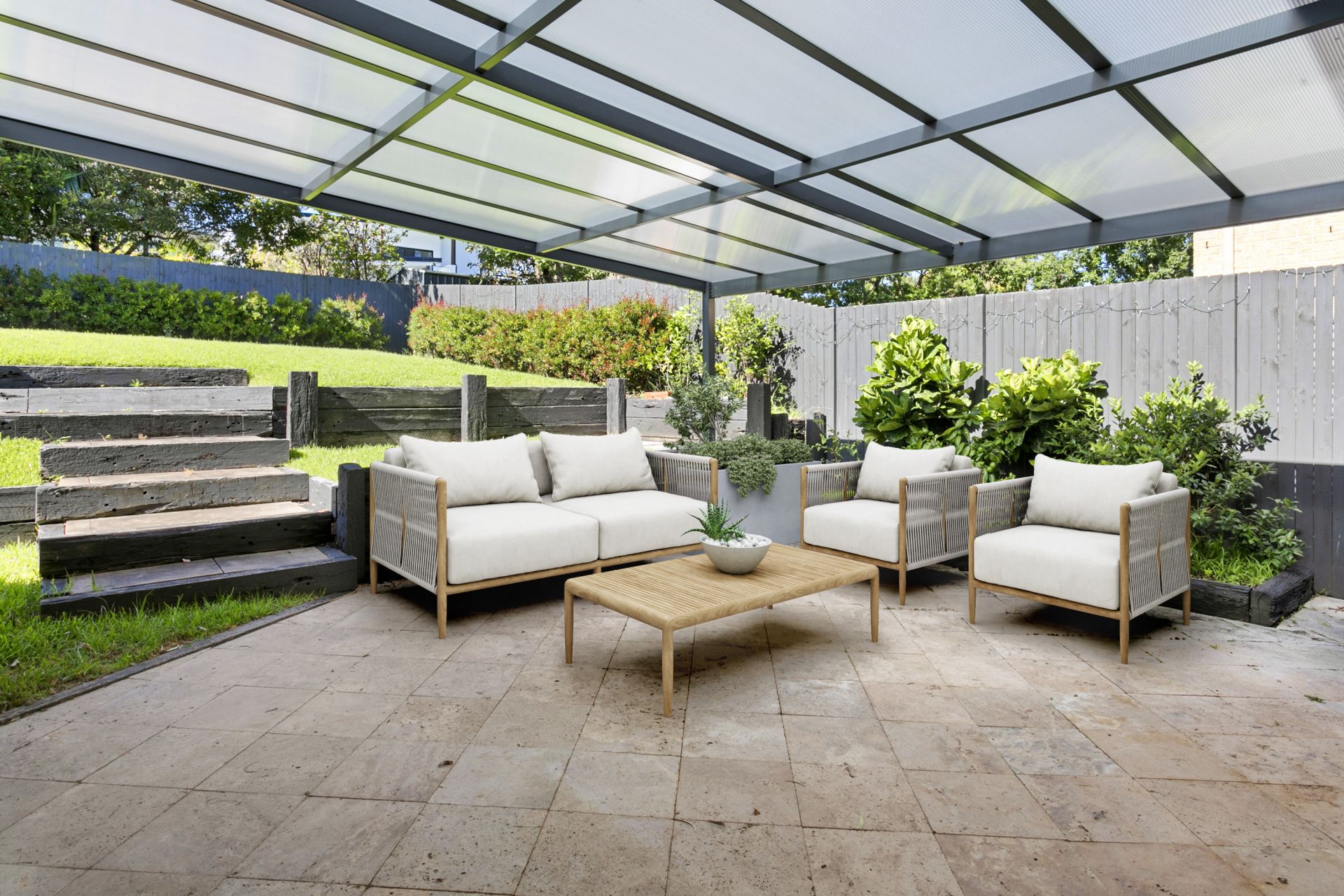 _Tiered lawn areas in landscaped surrounds
