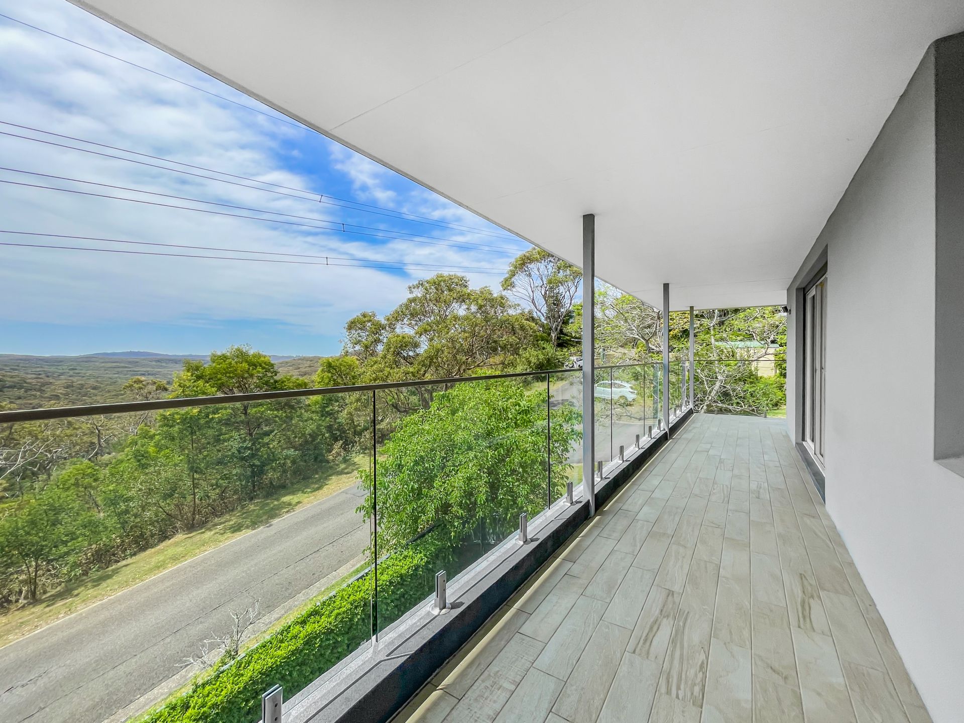 _Grand open-plan living flowing to full-length balcony with bush views