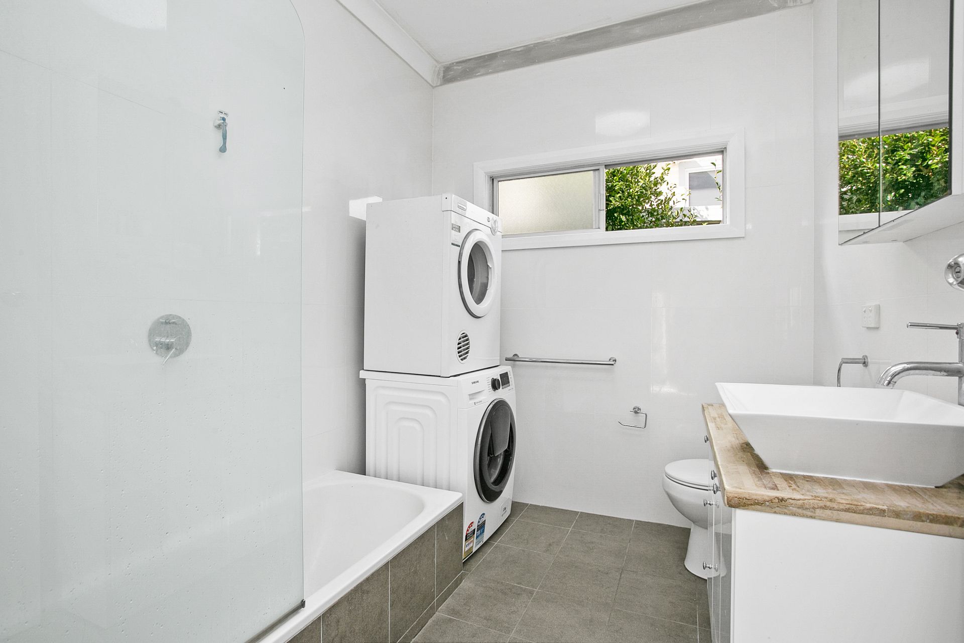 _Family bathroom includes bath tub and laundry