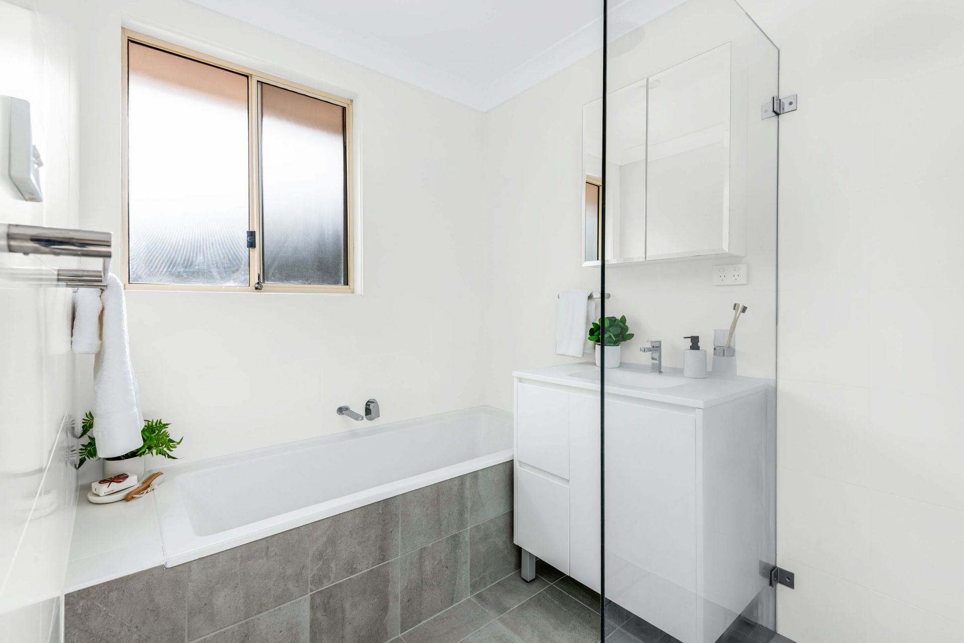 _Two renovated bathrooms in chic coastal tones
